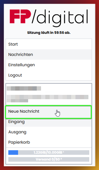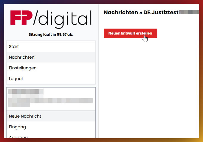 - Neuen Entwurf erstellen: Um eine Nachricht zu erstellen, auf den Button klicken.